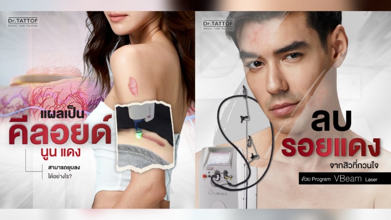 Dr.TATTOF เปิดตัวบริการใหม่ เพื่อฟื้นฟูปัญหาผิวที่เกิดจากรอยแดง สิวอักเสบ ปานแดง และคีลอยด์ โดยใช้เลเซอร์โปรแกรม VBeam ซึ่งถือเป็นนวัตกรรมทางการแพทย์ที่ได้รับการยอมรับในระดับสากล ในเรื่อง ของความปลอดภัย และผลลัพธ์ที่ชัดเจนในการรักษาปัญหาผิวต่าง ๆ อย่างตรงจุด