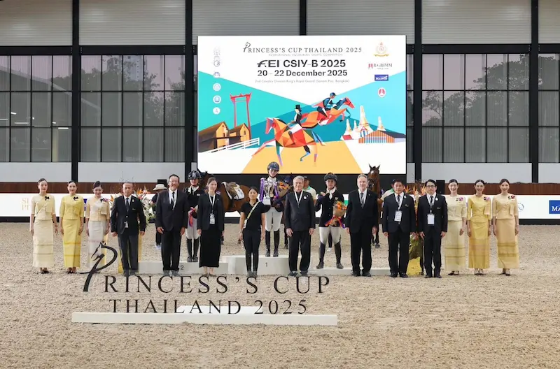 ปิดฉากลงแล้วอย่างงดงามกับการแข่งขันกีฬาขี่ม้าระดับนานาชาติรายการสำคัญแห่งปี “Princess’s Cup Thailand 2025” ที่จัดขึ้นอย่างยิ่งใหญ่ ระหว่างวันที่ 22-28 ธันวาคม 2568 ที่ผ่านมา ณ สนามขี่ม้า กองพลทหารม้าที่ 2 รักษาพระองค์ (สนามเป้า) กรุงเทพมหานคร โดยสมาคมกีฬาขี่ม้าแห่งประเทศไทย ในพระบรมราชูปถัมภ์ ในฐานะผู้จัดงานหลัก เผยถึงความสำเร็จว่า งานนี้เป็นเครื่องยืนยันถึงศักยภาพของวงการกีฬาขี่ม้าไทยที่พร้อมก้าวสู่เวทีโลกอย่างสง่างามและภาคภูมิ ทั้งยังนับเป็นอีกหนึ่งก้าวสำคัญในการสานต่อพระปณิธานของสมเด็จพระเจ้าลูกเธอ เจ้าฟ้าสิริวัณณวรี นารีรัตนราชกัญญา ในการพัฒนากีฬาขี่ม้าไทยให้มีความสง่างาม ได้มาตรฐาน และทัดเทียมระดับสากล